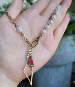 קיפיי 18k אופנה זהב 18k נירוסטה palestine מפת אבטיח פנינה